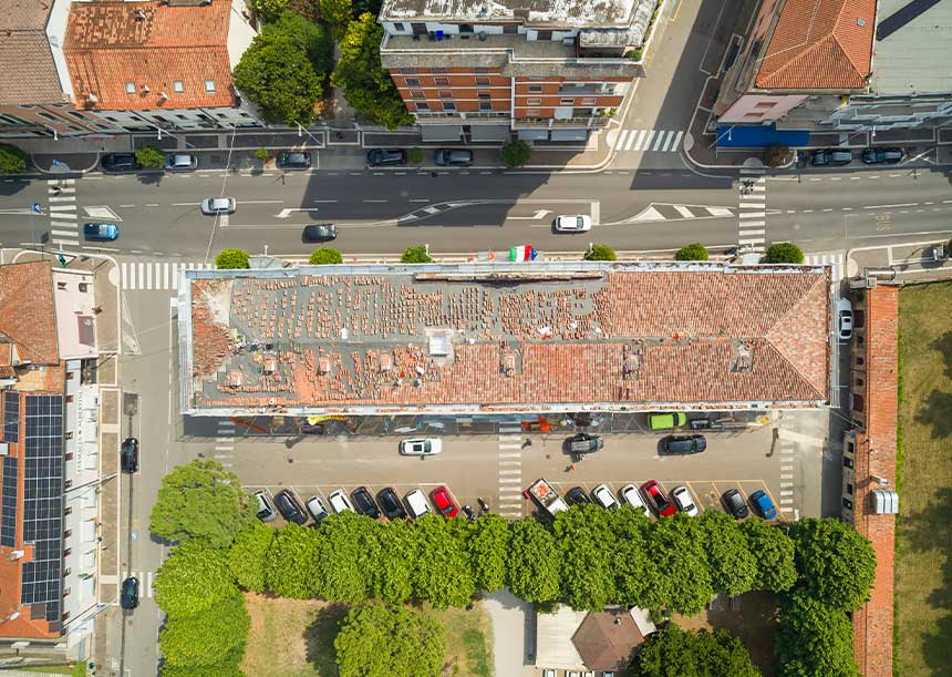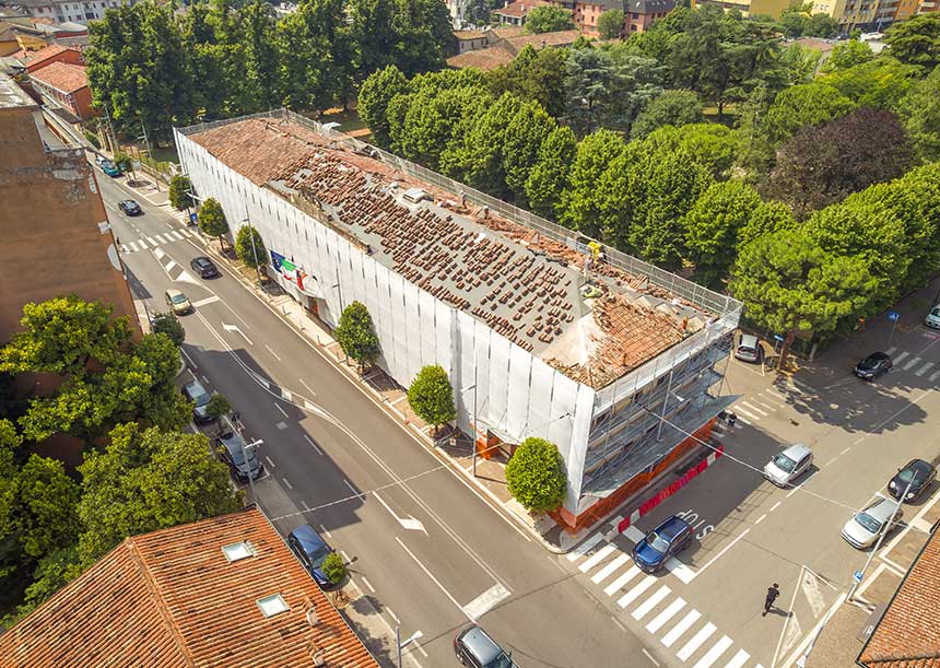 Dopo attente valutazioni sulle condizioni della copertura a capriate lignee, la scelta d’intervento ha portato ad un rinforzo metallico delle strutture portanti in legno, anche per un miglior comportamento in caso di sisma. Un intervento attento alle preesistenze dove in copertura è stato posato il sistema di ventilazione AERcoppo®, che si è rivelato ideale per tutte le esigenze dell’intervento.