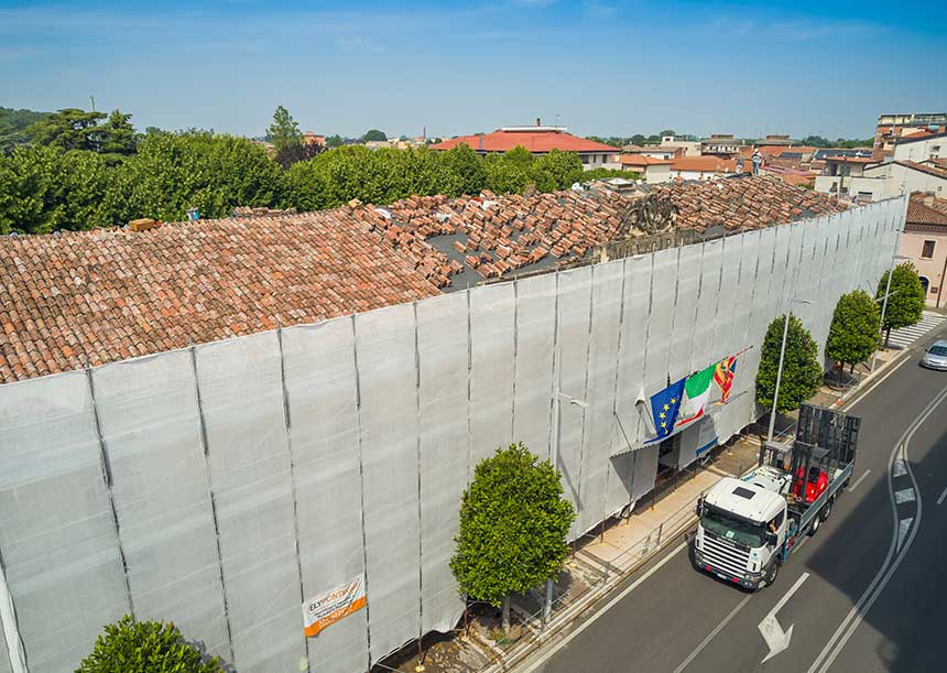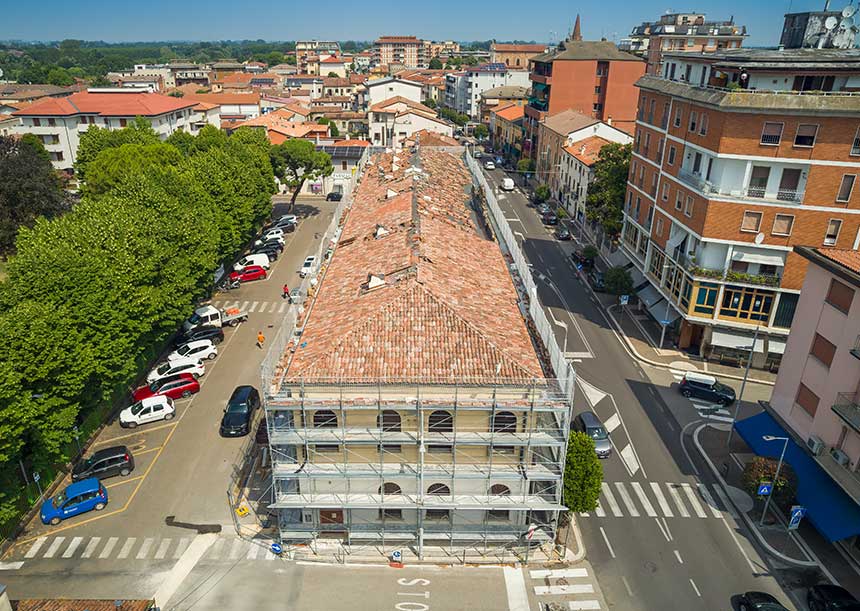 La ristrutturazione del Palazzo Municipale con adeguamento alla normativa antisismica e miglioramento della resa energetica, si inserisce nel programma di interventi realizzati con i fondi del PNRR. Questo ha permesso all’Amministrazione di riportare l’edificio alla piena efficienza, garantendone la sicurezza e conseguentemente quella dei dipendenti comunali presenti nei suoi uffici. I lavori iniziati nel 2023 hanno coinvolto principalmente la copertura, per ripristinarla totalmente sia dal punto di vista statico che di prestazioni energetiche, affiancando alcuni lavori sulle facciate e la sostituzione dei serramenti.